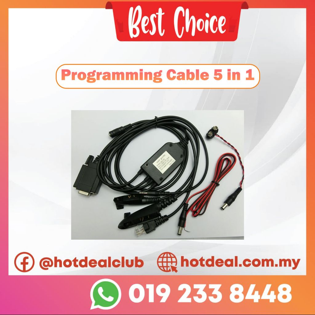 - 5 in 1: DB9 Female, 2.5 mm audio plug, RJ45 8 pin, GP328 Style, GP328+ Style