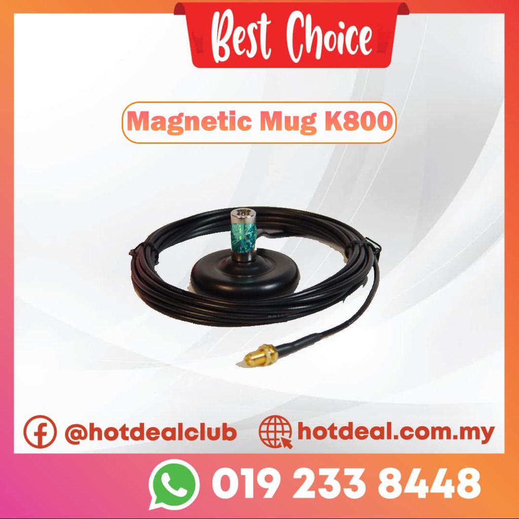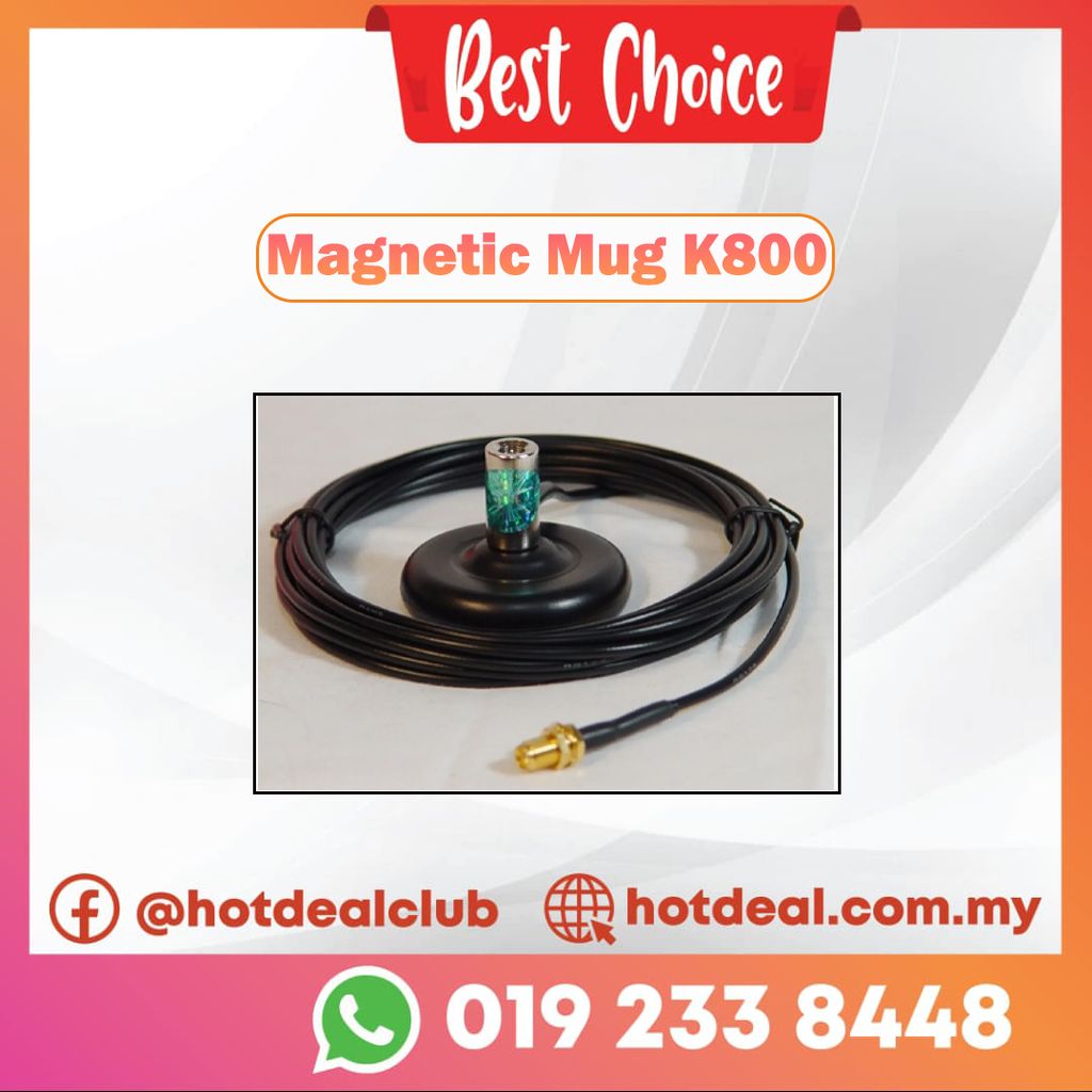 The Surmen K800-SMA-M is a magnetic antenna mount for HT antennas such as the WP-115. It has a strong 2 inch wide magnet mount with a female SMA jack. It includes RG-174 coax that terminates to a male SMA plug that fits most current amateur HTs.