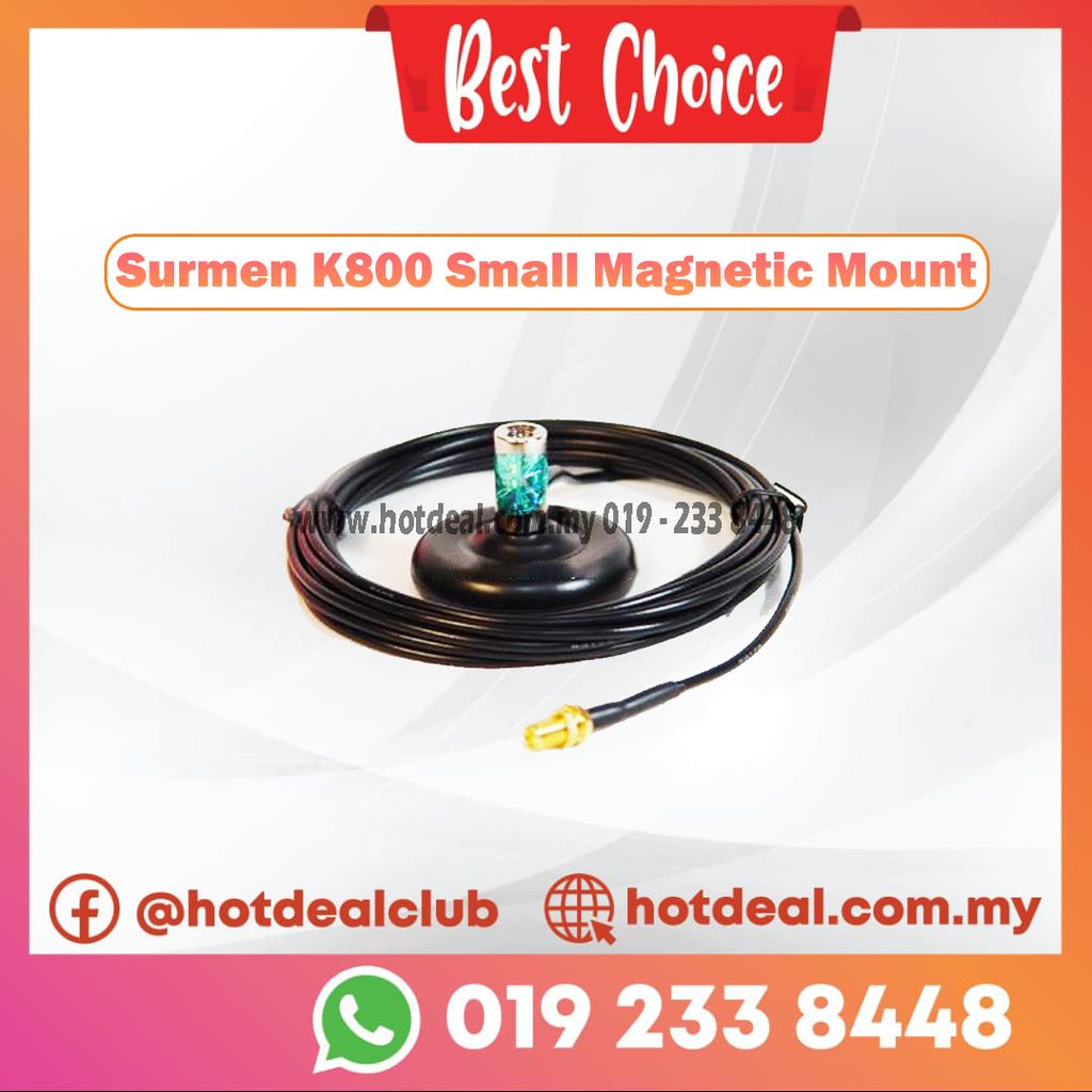 The Surmen K800 SMA-M. A magnetic base that accepts a SMA male HT antenna. Includes a 4 meter RG-174 coax cable. This is compatible with most amateur and commercial type handheld radios that have a SMA male HT antenna. It allows you to screw the HT antenna on the magnet base, and roof mount your antenna for increased transmit and receive range. It is also compatible with many brands, such as Yaesu, Kenwood, Icom, and specific models from Wouxun, TYT, etc.