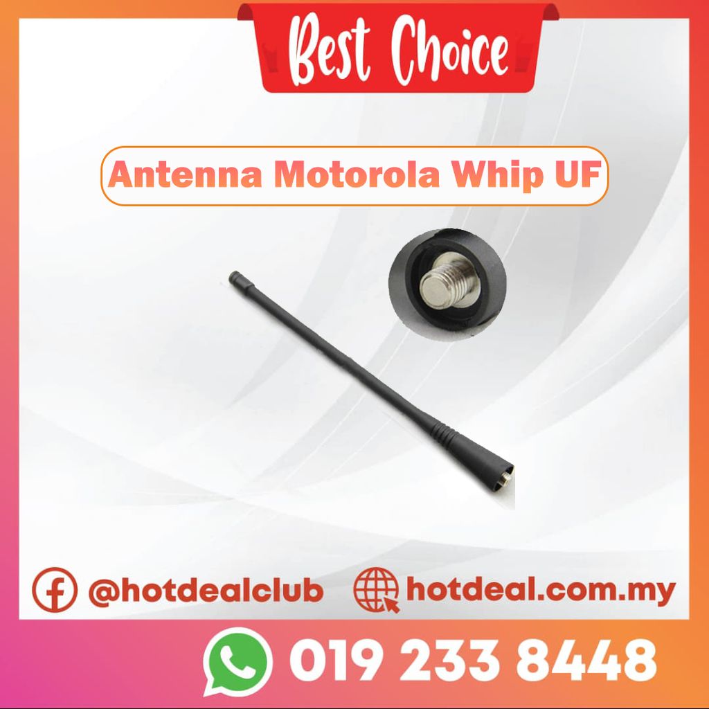 Motorola NAE6483AR This flexible whip antenna has a one-piece finish, steel core, and spiral wound conductor for optimal radiation characteristics.