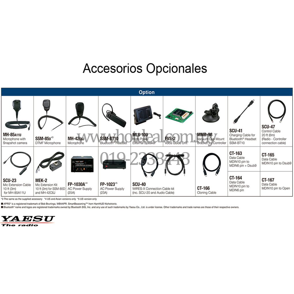 Built-in Bluetooth unit is installed in the FTM-300D. This enables the hands-free operation with the YAESU SSMBT10 or a commercially available product. The SSM-BT10 is equipped with a PTT button and also supports VOX operation. Using the new USB charger cable – SCU-41 with the controller of the FTM-300DR, the SSM-BT10 can be easily charged. The SSM-BT10 works for approximately 20 hours on single charge.