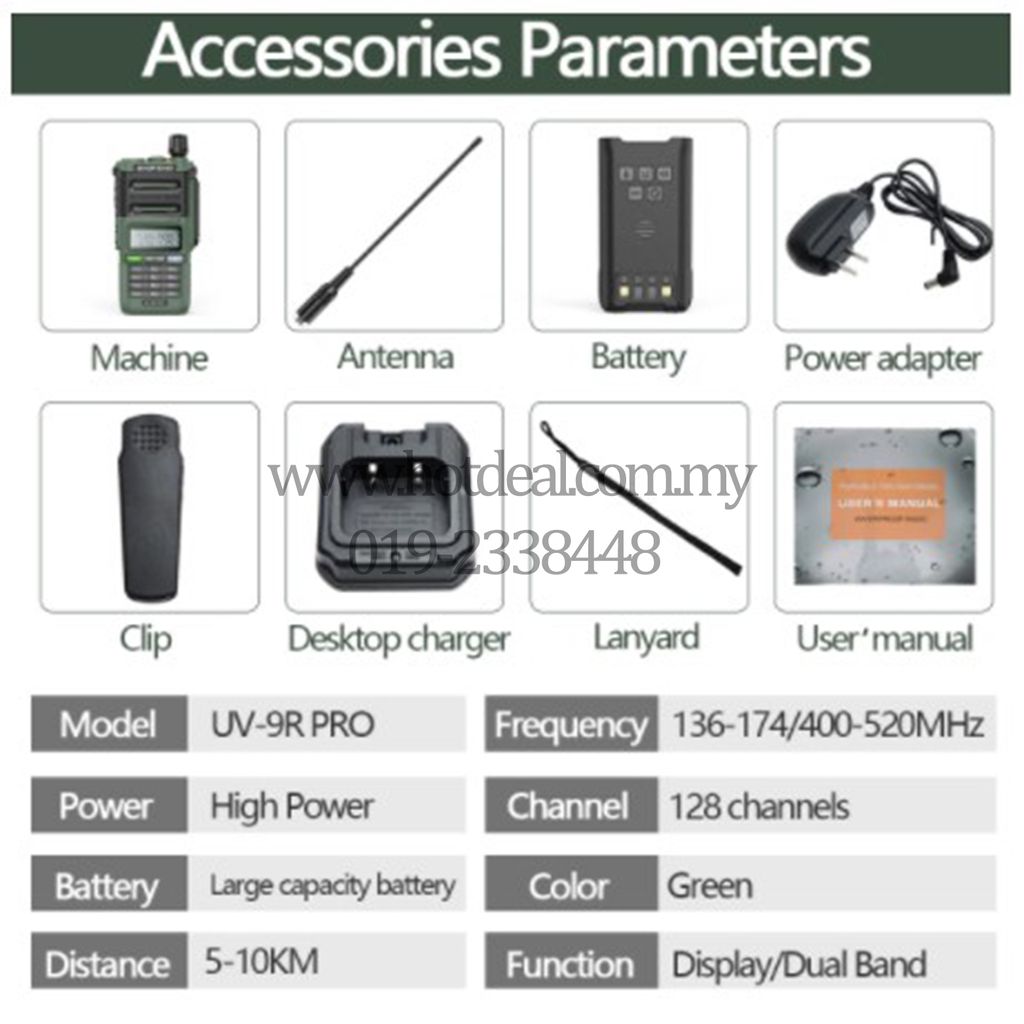 (Exclusive model) Walkie talkie Baofeng UV9R PRO IP68 Waterproof green
