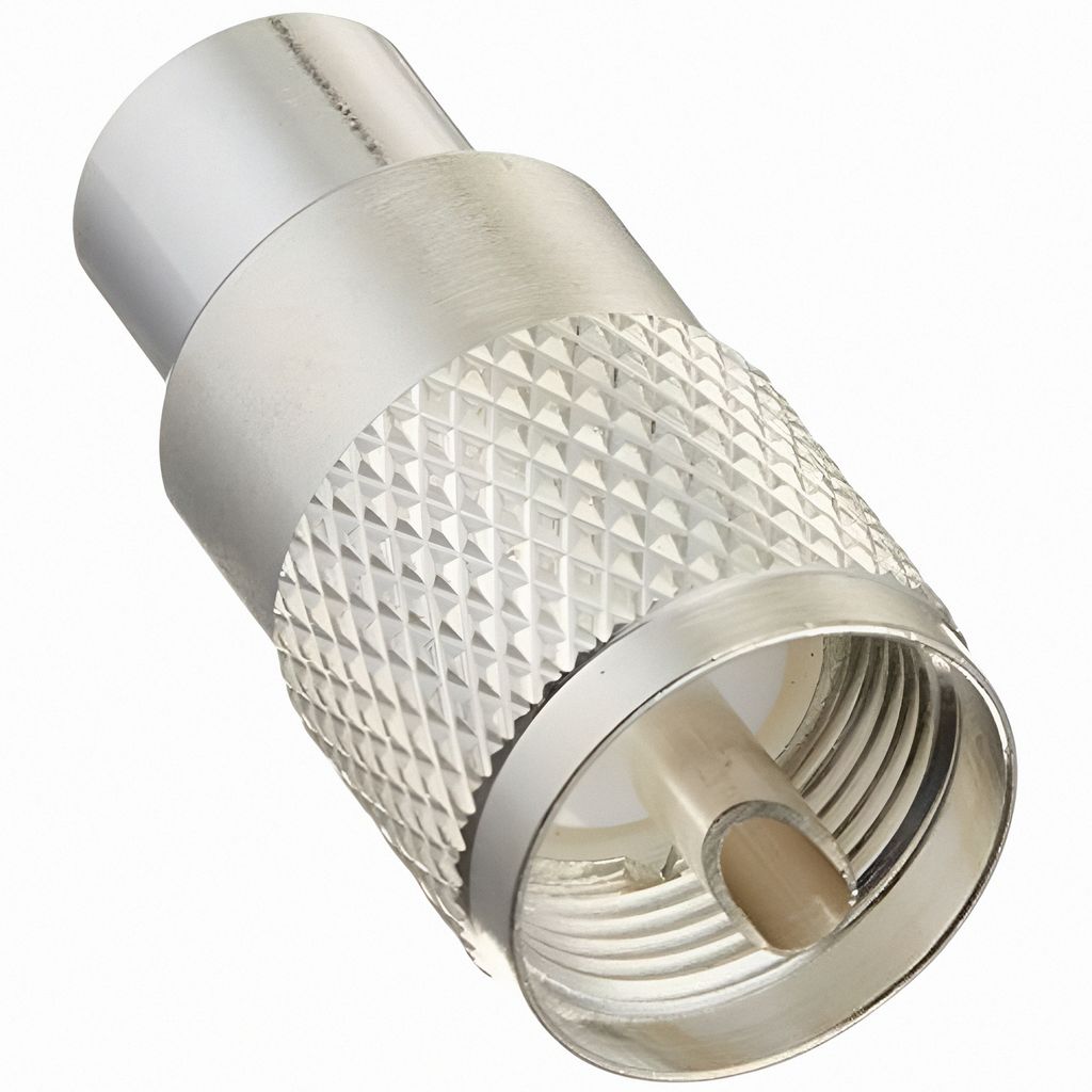 A male UHF connector (also called PL-259) is a threaded RF connector commonly used in RF applications. The threaded design makes a UHF connector a secure and reliable connection. UHF connectors come in male and female variations.