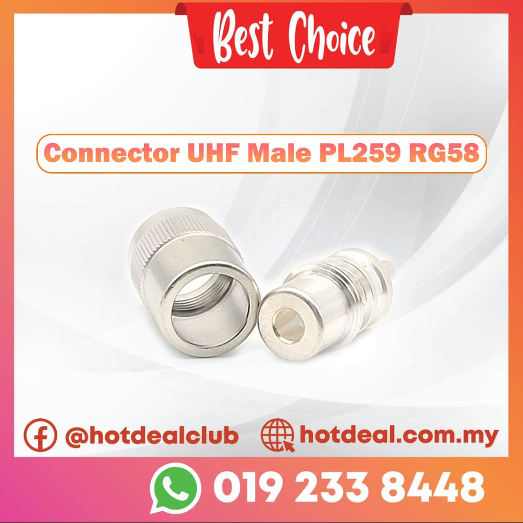 A male UHF connector (also called PL-259) is a threaded RF connector commonly used in RF applications. The threaded design makes a UHF connector a secure and reliable connection. UHF connectors come in male and female variations.