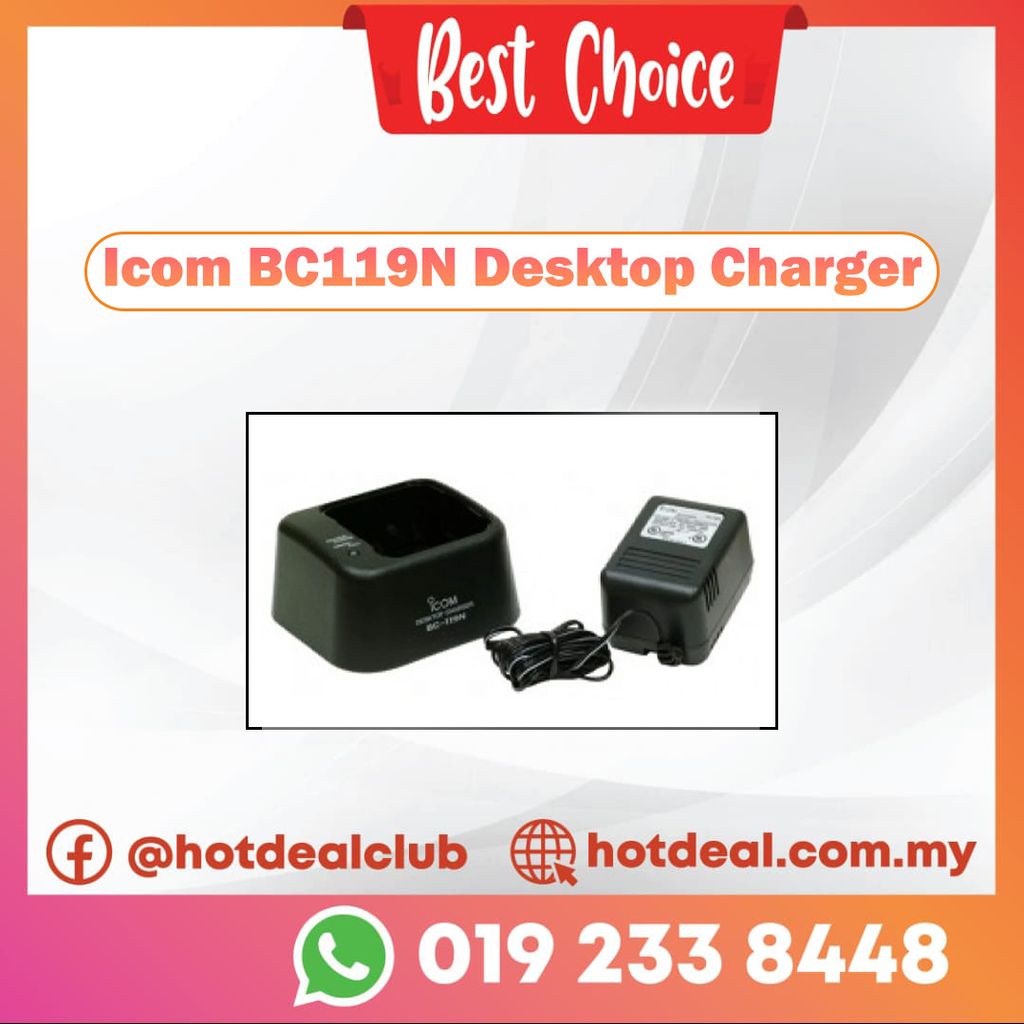 ICOM BC-119N Fast Charger for BP-209N, BP-201N, AND ORBP-211N. Comes with the desktop charger and adapter cup BC-145A