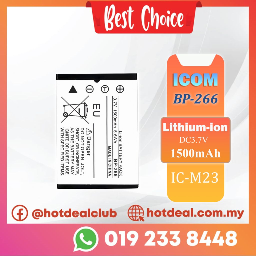 3.7V/1500mAh (min.), 1590mAh (typ.) Li-Ion battery pack for use with the Icom IC-M23 VHF radio.