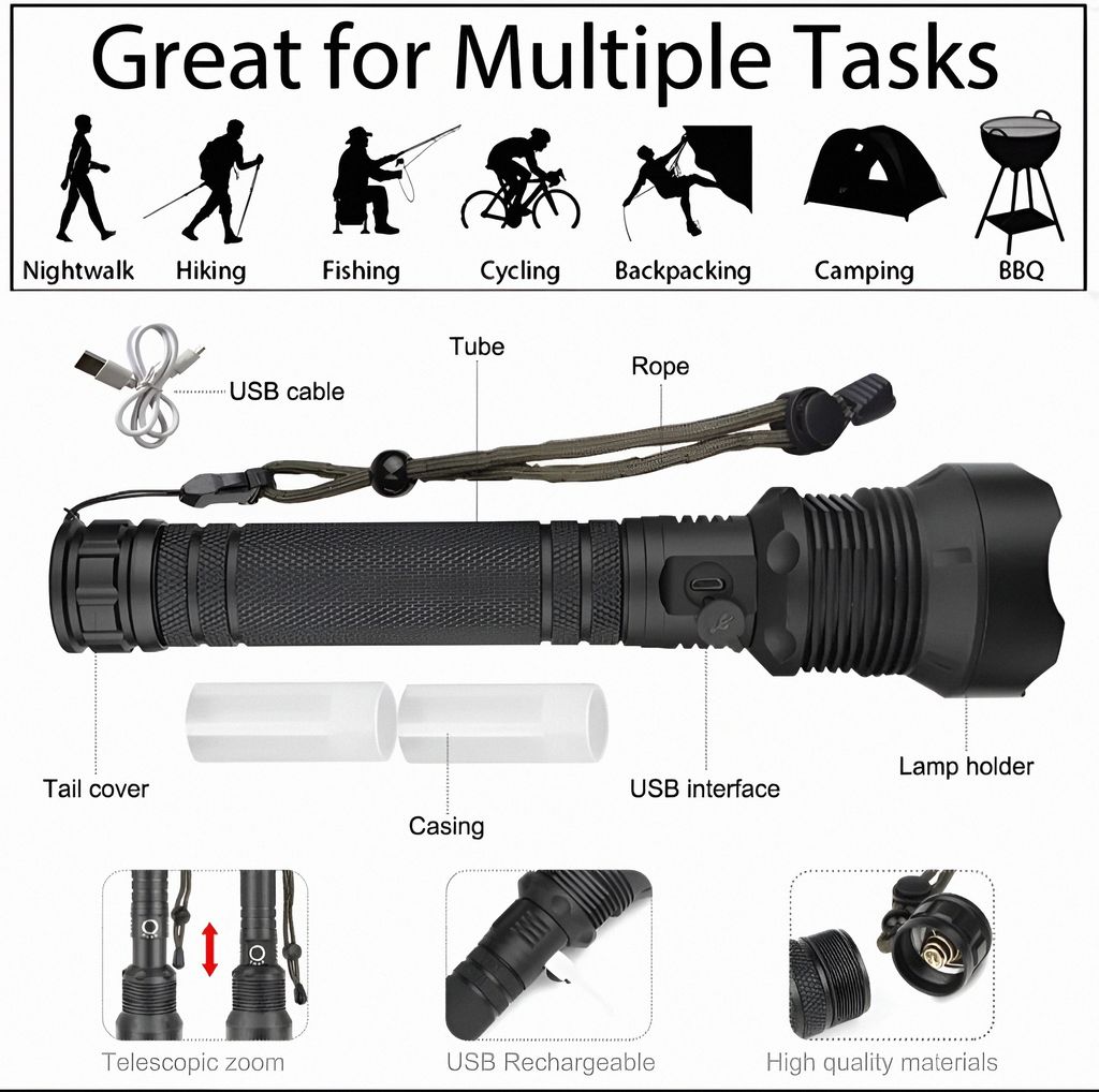 - Powerful LED flashlight uses Lamp XHP50/XH70.2