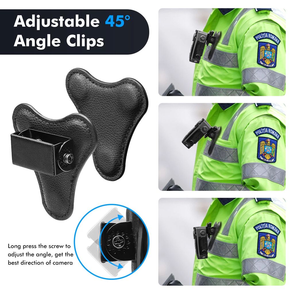 - 【Universal Body Camera Clip with High-quality Materials:】Two pics universal clips for all brand body cameras and models, Use high-quality black leather, safe, non-toxic, odorless, the suede sides will not cause damage to clothes. Take good care of the leather, wiping dirt for long use.